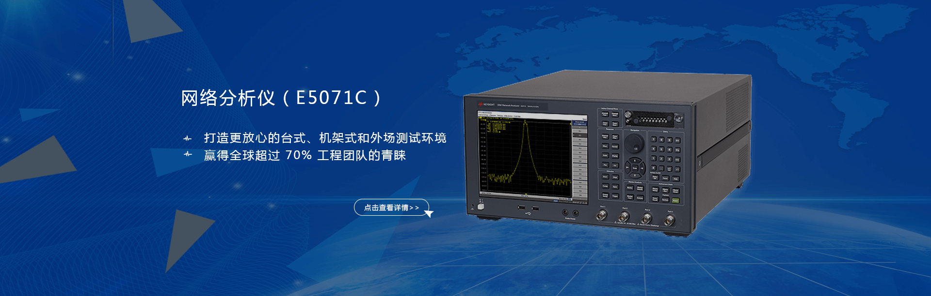主要產(chǎn)品有:頻譜分析儀,網(wǎng)絡(luò)分析儀,綜合測(cè)試儀,藍(lán)牙wifi測(cè)試儀,噪聲系數(shù)測(cè)試儀,接收機(jī),電話(huà)測(cè)試儀,高、低頻信號(hào)源,音、視頻信號(hào)分析儀,高精度萬(wàn)用表, LCR/ 電橋、各種通信電源等。經(jīng)營(yíng)的儀器品牌主要有:Keysight/Agilent (惠普 / 安捷倫)、 R/S (羅德 & 施瓦茨)、 Anritsu (安立)、Litepoint、 FLUK( 福祿克 ) 、 TEK (泰克)等。